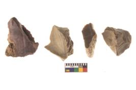 | Description / विवरण | There are n 4 flakes tool; there are large flakes with sides trimmed, Marks of secondary flaking are present on the both the faces. The dorsal is relatively flat. One is pointed functional top. |