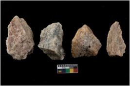 | Description / विवरण | There are n 4 flakes tool; there are multidirectional irregular scar pattern on them; made of short flakes and all four have tapering edges. |