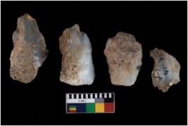 | Description / विवरण | There are n 4 of utilized worked cores and have multidirectional irregular scar pattern on both dorsal and ventral sides. Three are tapering at one end. |