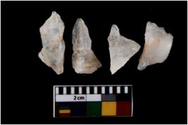 | Description / विवरण | There are n 4 utilized flake cores. Two have blunted edges and two have round edges. |