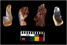 | Description / विवरण | There are n 4 utilized flake cores. There are multidirectional irregular scar pattern on both dorsal and ventral face of the flake cores. |