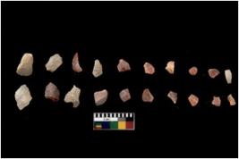 | Description / विवरण | Specimen of flakes Chips with prominent flaking marks. It made up of a short flakes with sides trimmed. |