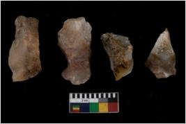 | Description / विवरण | There are n 4 of utilized worked cores.There are multidirectional irregular scar pattern on both dorsal and ventral sides. |