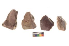 | Description / विवरण | There are n 4 flakes tool; there are multidirectional irregular scar pattern on them; made of short flakes and all four have tapering edges. |