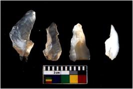 | Description / विवरण | Worked utilised flakes with sharp edges.Many a times they are tapering and pointed at one end. |