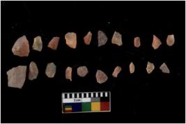 | Description / विवरण | Specimen of flakes Chips with prominent flaking marks. It made up of a short flakes with sides trimmed. |
