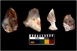 | Description / विवरण | There are n 4 utilized flake cores. There are multidirectional irregular scar pattern on both dorsal and ventral face of the flake cores. |