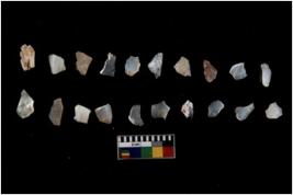 | Description / विवरण | There are n 20 Flake tool; There are multidirectional irregular scar pattern on them. few have blunt edges, Some of them are tapering at one end. |
