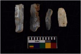 | Description / विवरण | There are n 4 flakes tool; there are multidirectional irregular scar pattern on them; made of short flakes and all four have tapering edges. |