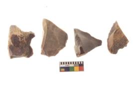 | Description / विवरण | There are n 4 flakes tool; there are multidirectional irregular scar pattern on them; made of short flakes and all four have tapering edges. |