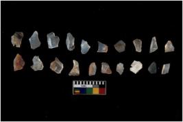 | Description / विवरण | There are n 20 Flake tool; There are multidirectional irregular scar pattern on them.few have blunt edges, Some of them are tapering at one end. |