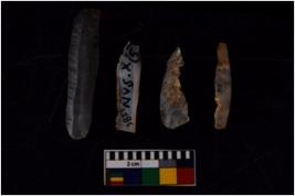| Description / विवरण | There are n 4 flakes tool; there are multidirectional irregular scar pattern on them; made of short flakes and all four have tapering edges. |