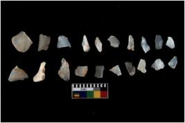 | Description / विवरण | Specimen of flakes with prominent flaking marks. It made up of a short flakes with sides trimmed. |