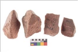 | Description / विवरण | There are n 4 utilized flake cores. There are multidirectional irregular scar pattern on both dorsal and ventral face of the flake cores. One has sharp edges and three have blunted edges. |