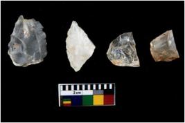 | Description / विवरण | There are n 4 flake cores. All of them are fully fluted flake cores without any trace of crested ridge flakes. Some of them have pointed edges whereas few have sharp edges. |
