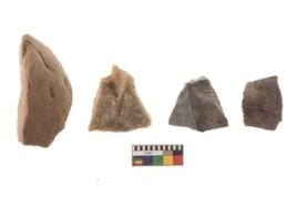 | Description / विवरण | There are n 4 flakes tool; there are large flakes with sides trimmed, Marks of secondary flaking are present on the both the faces. |