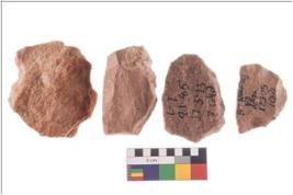 | Description / विवरण | Specimen of flake tools with prominent flaking marks. They are made up of a short flakes with sides trimmed. |