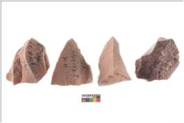 | Description / विवरण | There are n 4 utilized flake cores. There are multidirectional irregular scar pattern on both dorsal and ventral face of the flake cores. One has sharp edges and three have blunted edges. |