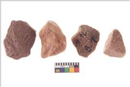 | Description / विवरण | Specimen of flake tools with prominent flaking marks. They are made up of a short flakes with sides trimmed. |