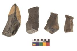 | Description / विवरण | There are n 4 flakes tool; there are flakes tool with prominent flaking marks. It made up of a large flakes with sides trimmed. It is rectangular in shaped. |