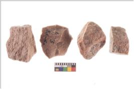 | Description / विवरण | Specimen of flake tools with prominent flaking marks. They are made up of a short flakes with sides trimmed. |