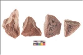 | Description / विवरण | There are n 4 utilized flake cores. There are multidirectional irregular scar pattern on both dorsal and ventral face of the flake cores. One has sharp edges and three have blunted edges. |