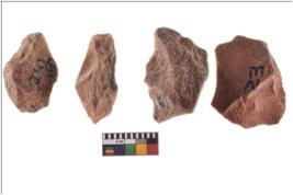 | Description / विवरण | There are n 4 utilized flake cores. There are multidirectional irregular scar pattern on both dorsal and ventral face of the flake cores. One has sharp edges and three have blunted edges. |