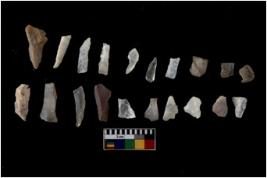 | Description / विवरण | Specimen of flakes with prominent flaking marks. It made up of a short flakes with sides trimmed. |