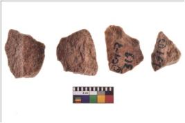 | Description / विवरण | Specimen of flake tools with prominent flaking marks. They are made up of a short flakes with sides trimmed. |