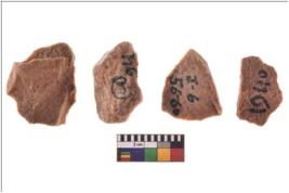 | Description / विवरण | Specimen of flake tools with prominent flaking marks. They are made up of a short flakes with sides trimmed. |
