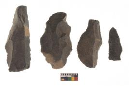 | Description / विवरण | There are n 4 flakes tool; there are flakes tool with prominent flaking marks. It made up of a large flakes with sides trimmed. It is rectangular in shaped. |