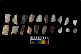| Description / विवरण | Specimen of flakes with prominent flaking marks. It made up of a short flakes with sides trimmed. |