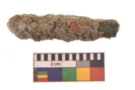 | Description / विवरण | Fragment of long nail with bilunt pointed functional bottom end and round slightly projected top. |