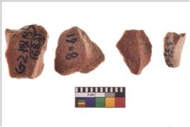 | Description / विवरण | .Specimen of flake tools with prominent flaking marks. They are made up of a short flakes with sides trimmed. |