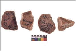 | Description / विवरण | There are n 4 utilized flake cores. There are multidirectional irregular scar pattern on both dorsal and ventral face of the flake cores. One has sharp edges and three have blunted edges. |
