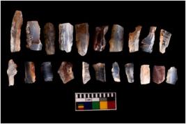 | Description / विवरण | There are n 20 flakes; most of them are with marginal retouch . They have a flat dorsal surface and double rigdes going parallel to its length. |