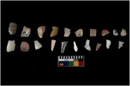 | Description / विवरण | Specimen of flakes with prominent flaking marks. It made up of a short flakes with sides trimmed. |