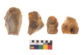 | Description / विवरण | There are n 4 utilized flakes. There are multi directional irregular scar pattern on both dorsal and ventral face of the flakes. two have tapering at one end and two have rounded edges. |