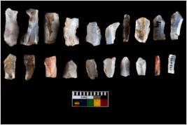 | Description / विवरण | There are n 20 flakes; most of them are with marginal retouch . They have a flat dorsal surface and double rigdes going parallel to its length. |