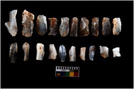 | Description / विवरण | There are n 20 flakes; most of them are with marginal retouch . They have a flat dorsal surface and double rigdes going parallel to its length. |