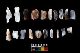 | Description / विवरण | There are n 20 flakes; most of them are with marginal retouch . They have a flat dorsal surface and double rigdes going parallel to its length. |