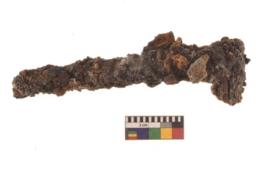 | Description / विवरण | Fragment of long nail with bilunt pointed functional bottom end and round slightly projected top. |