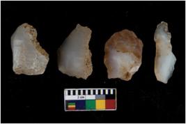 | Description / विवरण | There are n 4 utilized flake cores. There are multi directional irregular scar pattern on them. One has sharp edge and three are tapering at one end. |