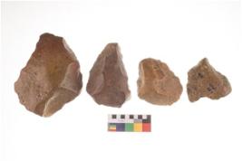 | Description / विवरण | There are n 4 utilized flakes. There are multi directional irregular scar pattern on both dorsal and ventral face of the flakes. Two have tapering edges and two have sharp edges. |