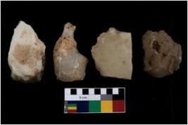 | Description / विवरण | There are n 4 utilized flake cores. There are multi directional irregular scar pattern on them. Two have sharp edges and two have round edges. |