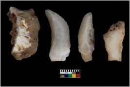 | Description / विवरण | There are n 4 utilized flake cores. There are multi directional irregular scar pattern on them. Two have sharp edge and two are tapering at one end. |