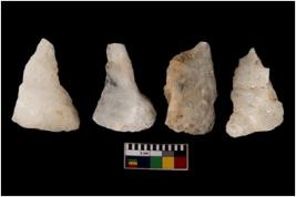 | Description / विवरण | There are n 4 flake cores. All of them are fully fluted flake cores without any trace of crested ridge flakes. |