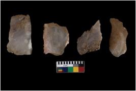 | Description / विवरण | There are n 4 utilized flake cores. There are multi directional irregular scar pattern on them. Two are tapering at one end and two have blunted edges. |