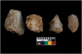| Description / विवरण | There are n 4 utilized flake cores. There are multi directional irregular scar pattern on them. One has sharp edge and three have blunted edges. |