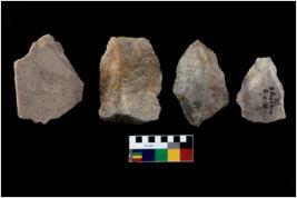 | Description / विवरण | There are n 4 flakes tool; there are multidirectional irregular scar pattern on them; made of short flakes and all four have tapering edges. |